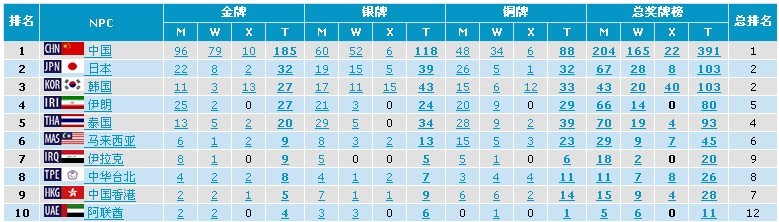 亞殘運(yùn)會(huì)獎(jiǎng)牌榜