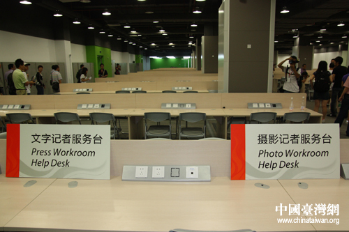 位于媒體中心內(nèi)部的文字記者和攝影記者工作區(qū),整個(gè)工作區(qū)共設(shè)有580個(gè)文字記者席和130個(gè)攝影記者席(中國(guó)臺(tái)灣網(wǎng) 趙輝 攝)