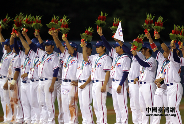 中國(guó)臺(tái)灣網(wǎng)11月20日廣州消息 廣州亞運(yùn)會(huì)棒球決賽19日晚結(jié)束,上屆亞運(yùn)會(huì)冠軍中華臺(tái)北隊(duì)以3:9不敵韓國(guó)隊(duì),衛(wèi)冕失利,獲得銀牌。以亞軍身份站上領(lǐng)獎(jiǎng)臺(tái),中華臺(tái)北棒球隊(duì)的隊(duì)員們難見(jiàn)絲毫笑意,而他們的教練出席新聞發(fā)布會(huì)時(shí),也是一臉嚴(yán)肅。(記者 鐘寶華)