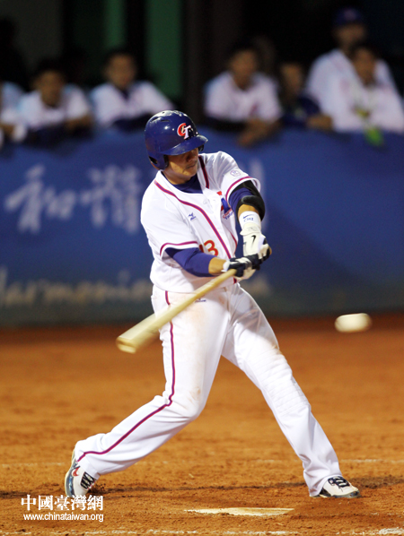 中華臺(tái)北隊(duì)擊球瞬間。(中國(guó)臺(tái)灣網(wǎng) 鐘寶華 攝)
