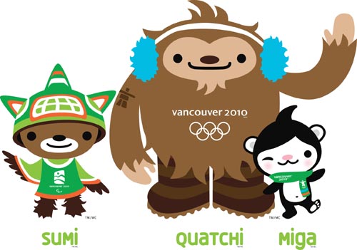 這3個(gè)吉祥物是由溫哥華米奧米設(shè)計(jì)公司設(shè)計(jì)的。米加是一只正在滑雪的北極熊,其創(chuàng)意來自不列顛哥倫比亞省原住民的民間傳說。魁特奇是一個(gè)留著棕色胡須、戴著藍(lán)色耳罩的北美野人,這一形象讓人聯(lián)想到有關(guān)加拿大廣闊荒原的神秘故事。蘇米則是一個(gè)長(zhǎng)著雷鳥翅膀,會(huì)飛翔的動(dòng)物守護(hù)神,它是一個(gè)“天生的領(lǐng)袖,對(duì)保護(hù)環(huán)境充滿熱情”。