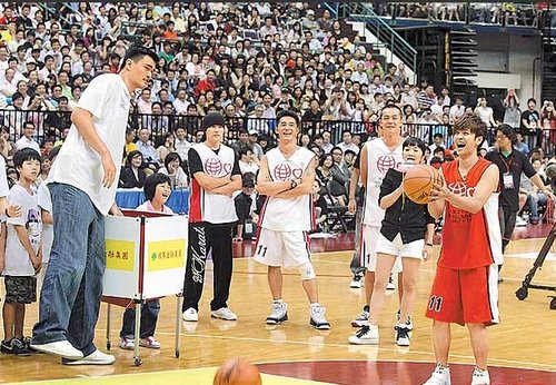 東方網(wǎng)7月29日消息:姚明登高一呼,周杰倫(周董)、羅志祥(小豬)昨率10名藝人在臺北參加“2010姚基金慈善之旅”臺北站慈善表演賽。周董、小豬在NBA球星面前不改愛秀個性,雖技不如人,但花招不少,逗得現(xiàn)場球迷笑聲不斷。