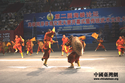 海峽兩岸體育交流大賽開(kāi)幕式暨傳統(tǒng)武術(shù)交流大賽開(kāi)幕式現(xiàn)場(chǎng)。(中國(guó)臺(tái)灣網(wǎng) 包杰 攝)