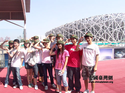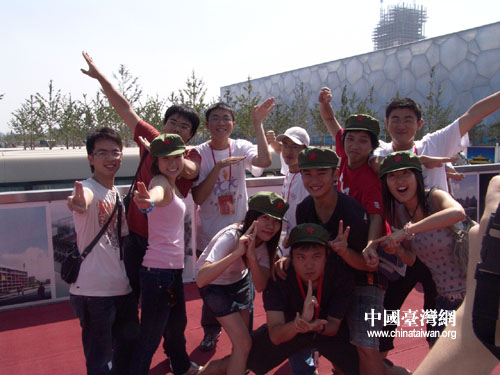 時(shí)值正午,烈日當(dāng)空,但臺(tái)灣青年代表們的激情一點(diǎn)也不比驕陽遜色。剛一下車,代表們便被兩個(gè)奇特新穎的建筑所吸引,陽光下,“水立方”外面的藍(lán)色“泡泡”光彩奪目,與幾百米遠(yuǎn)的“鳥巢”遙相呼應(yīng)!疤罅,太美了,太漂亮了!”代表們紛紛拿起手中的照相機(jī),咔嚓咔嚓拍個(gè)不停。從解說人員的講解了解到“鳥巢”這座2008年北京奧運(yùn)會(huì)開、閉幕式場館和由港澳臺(tái)僑同胞捐資興建的“水立方”所應(yīng)用的各種科學(xué)新技術(shù)時(shí),同學(xué)們紛紛表示,我們有這么棒的比賽場館,作為一個(gè)中國人感到非常驕傲。
