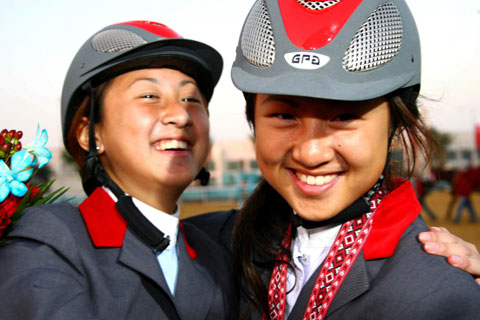 展現(xiàn)在多哈亞運賽場上的青春笑靨,如同多哈的陽光燦爛!亞運會的所有參與者是緣分;不同種族不同信仰而同場競技是緣分;若是并蒂孿生兄弟姐妹以項目搭檔參與競賽更是緣分。本屆亞運會確有幾對孿生兄弟姐妹在賽場上的出色表現(xiàn),成為多哈的亮點。 這是來自中國臺北的選手陳少曼(右)和陳少喬在接受采訪。妹妹陳少曼在馬術(shù)障礙賽中擊敗韓國選手奪得銀牌,姐姐陳少喬取得了第四的好成績(12月12日攝)。新華社記者龔兵攝 。▉碓矗盒吕梭w育)