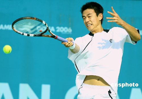 十二月五日,第十五屆多哈亞運(yùn)會男子網(wǎng)球團(tuán)體四分之一決賽,中國臺北隊(duì)以二比零戰(zhàn)勝菲律賓隊(duì),挺進(jìn)四強(qiáng)。圖為中國臺北運(yùn)動員王宇佐在比賽中。