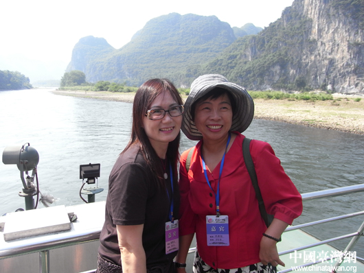 臺(tái)灣文化界人士在漓江上合影留念(中國(guó)臺(tái)灣網(wǎng) 蕪?fù)?攝)