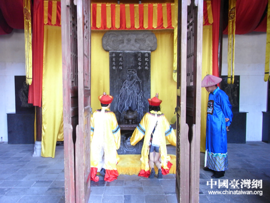 跪拜至圣師孔子是必不可少的程序 (中國臺灣網(wǎng) 蕪同 攝)