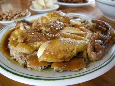 現(xiàn)在我要跟大家分享一種風味美食——“泥窯雞”。座落于北海大道與湖南路交界(即金葵市場紅路燈處)有間名叫“廣東豪苑雞飯店”那里的泥窯雞選定獨特配方。以高溫明火烘烤獨特土壤焗出純正泥窯雞。其味濃郁芳香,唇齒留香。經(jīng)常食用可溫補 強身。