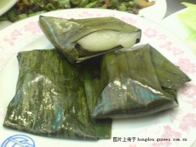 蕉葉糍,對(duì)于北方的朋友,可能比較陌生,但是對(duì)老南寧來說,蕉葉糍尤其親切。蕉葉糍是壯家民間風(fēng)味小食。將糯米淘凈,浸泡后磨成米漿,裝入布袋,壓干水分。將洗凈燙軟的芭蕉葉剪成六寸左右的方塊,涂生油以防粘連,將干米漿用蕉葉包好煮熟。名曰蕉葉糍。要吃甜的,將糖煮成濃糖漿,加適量豬油,與干米漿搓勻,拌以白糖、芝麻、碎花生仁為餡,包成長條形,入蒸籠中蒸20分鐘即可食。喜吃咸的,則在干米漿中加適量鹽,或用甜皮包咸餡。吃起來除了有一般糍粑的風(fēng)味外,還有蕉葉的清香。
