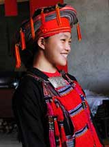 中國歷史上遷徙較多的一個(gè)民族,其先民一般認(rèn)為是秦漢時(shí)長沙武陵蠻的一部分,或說源于“五溪蠻”。自隋唐開始,廣西瑤族由湖南和廣東等地遷入。到明代,廣西成為瑤族的主要分布區(qū),主要聚居在金秀、巴馬、都安、大化、富川、恭城 6個(gè)瑤族自治縣,幾逯递^多,有盤瑤、過山瑤、頂板瑤、花籃瑤、白褲瑤、藍(lán)靛瑤、紅瑤、茶山瑤等稱謂,幾逵凶约旱恼Z言,屬漢藏語系苗瑤語族,其語言支系復(fù)雜。瑤族地區(qū)一般通用漢文或壯文,沒有本民族文字。 瑤族的宗教信仰因地而異,有自然崇拜、祖先崇拜,也有圖騰崇拜。還有些地區(qū)信仰巫術(shù)和道教。瑤族房屋建筑風(fēng)格多樣,其中最具特色的是木樓。木樓依山傍水,前低后高,坐落方向不限。木樓群一般分為三層 :吊樓下為第一層,用于圈家畜;第二層住人;第三層儲存糧食和物品。木樓建造無須一根鐵釘,十分堅(jiān)固。室內(nèi)陽光充足,空氣流通。古有“瑤好五色衣裳”之稱,瑤族服裝常飾五色絲線的繡花 ,幾鍕D女頭飾最為講究,有“龍盤”形、“A”字形、“半月牙”形等!褒埍P”形是把十多米長的繡花巾盤在頭上;“A”字形是指用繡花巾纏繞而成,上窄下寬,再系上各色絲絨線和彩色珠子;“半月牙”形是指將三塊“半月牙”型的銀牌置于頭頂上……,幾宄4⿲鬅o扣上衣,系腰帶。男子下身穿青褲,護(hù)綁腿。女子上衣圖案豐富多彩,有花、鳥、魚、蟲、幾何圖案、人物形象…… ,衣領(lǐng)有圓領(lǐng)、豎領(lǐng)兩種,下身穿布片裙、繡花裙等。