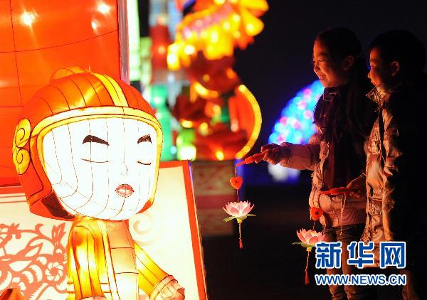 2月15日,孩子們手提荷花燈在南京中華門城墻上看燈展。當(dāng)日是農(nóng)歷正月十三——傳統(tǒng)的“上燈日”。秦淮國際燈會(huì)展區(qū)之一的南京中華門舉行提燈迎元宵活動(dòng)。 新華社記者孫參攝