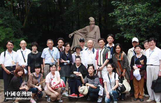 13日,情系巴蜀—兩岸文化聯(lián)誼行活動(dòng)走進(jìn)眉山三蘇祠。圖為臺(tái)灣嘉賓在蘇軾雕像前合影。(中國臺(tái)灣網(wǎng) 趙輝 攝)