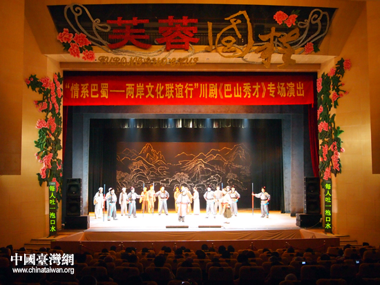 中國(guó)臺(tái)灣網(wǎng)7月18日成都消息 四川省川劇院17日為“情系巴蜀——兩岸文化聯(lián)誼行”嘉賓演出著名劇目《巴山秀才》。一部晚清歷史劇因?yàn)榫傻臉?gòu)思與頗具現(xiàn)代感的編排,成功博得臺(tái)灣嘉賓的陣陣喝彩。