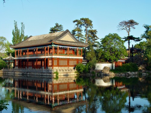承德避暑山莊(the Mountain Resort)又名承德離宮或熱河行宮位于河北承德。建造于18世紀(jì)初,是由皇帝宮室、皇家園林和宏偉壯觀的寺廟群所組成。 避暑山莊占地564萬平方米,環(huán)繞山莊婉蜒起伏的宮墻長達(dá)萬米,是中國現(xiàn)存最大的皇家園林。避暑山莊借助自然和野趣的風(fēng)景,形成了東南湖區(qū)、西北山區(qū)和東北草原的布局,共同構(gòu)成了中國版圖的縮影。宮殿區(qū)建于南端,是皇帝行使極力、居住、讀書和娛樂的場所,至今珍藏著兩萬余件皇帝的陳設(shè)品和生活用品。避暑山莊這座清帝的夏宮,以多種傳統(tǒng)手法,營造了120多組建筑,融匯了江南水鄉(xiāng)和北方草原的特色,成為中國皇家園林藝術(shù)薈萃的典范。清朝的康熙、乾隆皇帝時(shí)期,每年大約有半年時(shí)間要在承德度過,清前期重要的政治、軍事、民族和外交等國家大事,都在這里處理。因此,避暑山莊也就成了北京以外的陪都和第二個(gè)政治中心。它不僅有豐富的文化內(nèi)涵,同時(shí),是中國統(tǒng)一多民族國家鞏固和發(fā)展的象征,也是一部研究十八世紀(jì)中國歷史的教科書和珍貴歷史文化遺產(chǎn)的博物館。