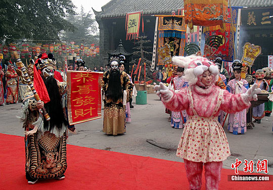 中新網(wǎng)成都2月3日電 (記者 楊杰)兔年正月初一上午10時,“游喜神方”百人仿古祭祀大典在“2011成都大廟會”隆重上演。