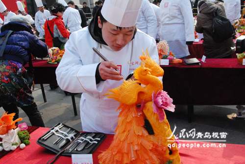 全國蘿卜雕刻大賽,作為每年開幕式一大標(biāo)志性活動,40余位雕刻師現(xiàn)場表演,以手中的刻刀切磋技藝,極具觀賞性。同時組委會還為廣大市民準(zhǔn)備了一場民俗文化盛宴,多位藝人現(xiàn)場講解民間藝術(shù)的制作技巧,展示民間藝術(shù)無與倫比的魅力;傳統(tǒng)綜藝形式秧歌、踩高蹺、地方劇種(柳腔、呂劇、茂腔等)、民間雜耍、中華魔術(shù)、舞獅表演等同臺亮相。今年更是強調(diào)了各類活動的互動性,安排了“民俗達人秀出來!” 、“民間明星堂” 等板塊活動,匯聚了來自民間的民俗力量,打造島城人自己的民俗盛會。