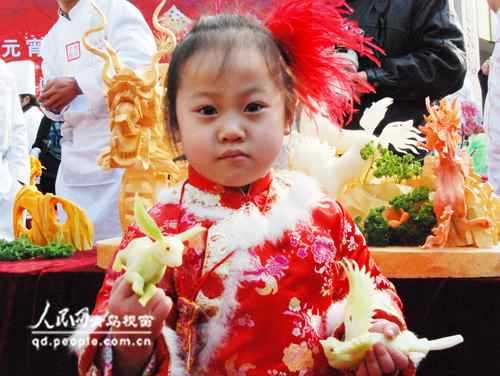 人民網(wǎng)青島2月11日電 (記者 楊紅) 今天,素有“青島新春第一節(jié)”之稱的2011青島(市北)蘿卜會·元宵山會拉開帷幕。清脆的蘿卜,唯妙唯肖的蘿卜雕刻、各地特色小吃、傳統(tǒng)高蹺、民間大鼓等吸引了數(shù)萬市民前來參會。