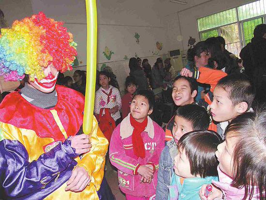愛心網(wǎng)友小丑叔叔為孩子們帶來禮物 本報(bào)記者黃登攝