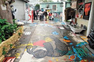 目前自助新村的彩繪創(chuàng)作,由五名海青工商廣告科學(xué)生接手,他們每天下課后到此彩繪,期待能有佳音,“就算不幸被拆,它也活在民眾的回憶里!”
