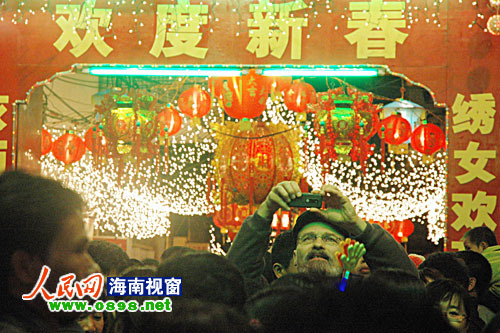 在海瑞故居的兩棵榕樹下,市民許愿祈;顒痈菬狒[,市民紛紛把新年愿望寫在卡片上,系上紅繩綁在榕樹下,祈求新的一年平安吉祥、順順利利。此外,當(dāng)晚的紅城湖廟會也人潮涌動、熱鬧非凡,燈展、游園、卡拉OK、木偶戲、傳統(tǒng)小吃、瓊劇票友演唱會等讓市民們興致濃濃。