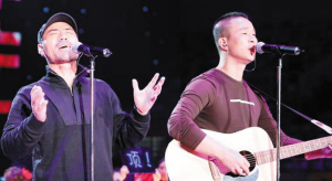 2. 阿爾發(fā)和世博小男孩裴仁萱與網(wǎng)民代表共唱《大中國(guó)》