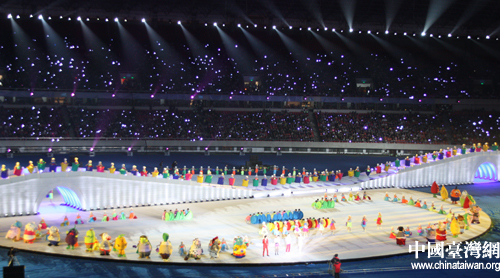 4月28日晚,第六屆中國(guó)國(guó)際動(dòng)漫節(jié)在杭州黃龍?bào)w育場(chǎng)舉行開幕式文藝晚會(huì),場(chǎng)面規(guī)模超越往屆。場(chǎng)中舞美設(shè)計(jì)按照西湖白堤的比例原樣移植現(xiàn)場(chǎng),讓觀者直呼場(chǎng)面超宏大。(中國(guó)臺(tái)灣網(wǎng) 李桂英 攝)