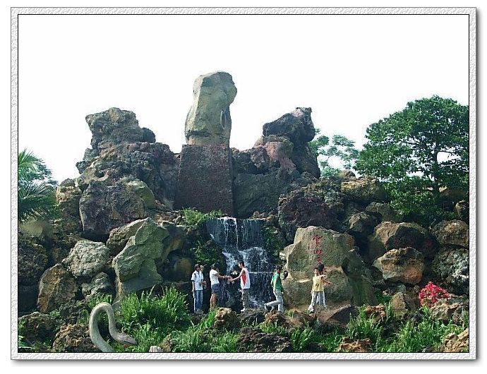 要觸摸到那些2.7萬年前從火山口里噴射出來、已經(jīng)凝固了多年的巖漿石非常容易,只要你走進(jìn)火山口國家地質(zhì)公園所在的石山鎮(zhèn),鎮(zhèn)上人家的圍墻基石幾乎都是用較大塊的巖漿石堆砌而咸,公路兩邊散落的小塊巖漿石也到處可見。進(jìn)火山口公園里主要就是去看看那個(gè)火山口,先是爬上一些石階,經(jīng)過一叢很大很密的野菠蘿樹后,你就能站在火山口的邊沿上了.從邊上往下看,火山口就像是一個(gè)很大的綠色洞口,因?yàn)槎催叺氖谏蠞M披著綠色的各種植物,洞口上寬下窄,越往下光線就越暗.石壁邊造了兩條小石階供游客走下火山口去, 不用多久就到洞底。那曾經(jīng)噴發(fā)出灼熱熔巖的火山口已經(jīng)隱身在陰霾與幽綠之中,細(xì)細(xì)的水流從洞里流出來,除了潮濕與森森的冷氣,無論怎樣使勁地發(fā)揮想像力,也很難把當(dāng)前的情景與2.7萬年前火山爆發(fā)的情景聯(lián)系起來.雖然據(jù)說在這火山口的附近有大小72個(gè)隧洞縱橫交錯(cuò),但站在洞口你什么也看不出來?催@火山口實(shí)在沒有什么趣味,返回嶺上,可以看到?谑惺腥。