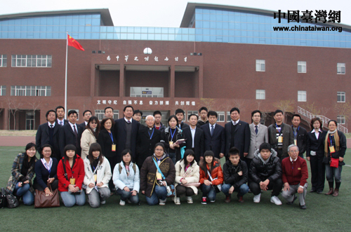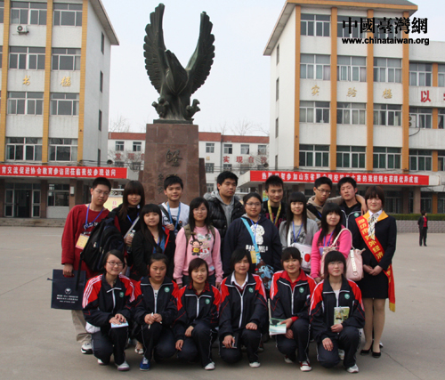 在濰坊一中的操場上合影留念(中國臺灣網(wǎng) 楊永青 攝)