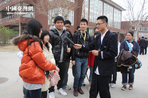 接受濰坊一中同學的采訪(中國臺灣網(wǎng) 楊永青 攝)