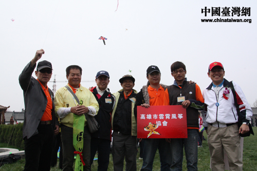 高雄市云霄風(fēng)箏協(xié)會代表隊拍照留念。(中國臺灣網(wǎng) 楊永青 攝)