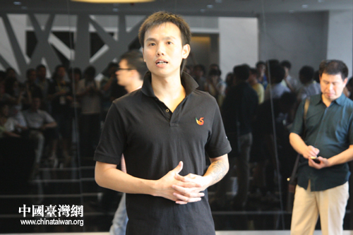 雨林木風(fēng)總經(jīng)理賴霖楓向記者們介紹企業(yè)情況(中國臺灣網(wǎng) 趙輝 攝)