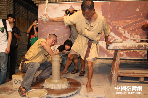 南風古社內(nèi)的傳統(tǒng)陶藝表演(中國臺灣網(wǎng) 趙輝 攝)