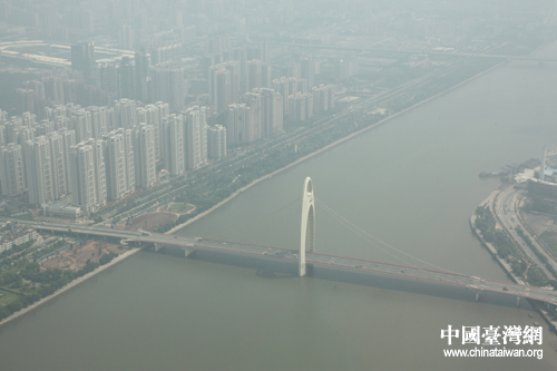 從廣州電視塔頂端俯瞰珠江,沿岸美景盡收眼底。(中國(guó)臺(tái)灣網(wǎng) 趙輝 攝)