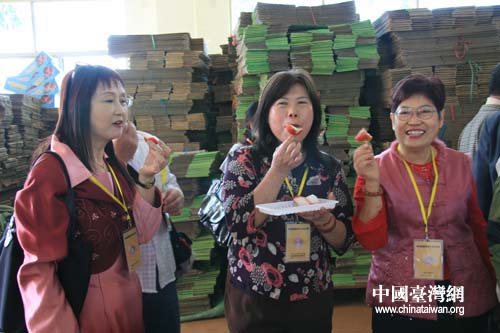 來自臺南縣的記者品嘗黃益豐農(nóng)場里出產(chǎn)的蓮霧贊不絕口(李杰 攝)