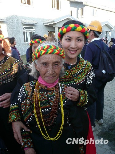 一個(gè)年長(zhǎng)的衣著樸實(shí)的義工拿著火紅的春聯(lián),準(zhǔn)備張貼到新居的門匾上。上聯(lián)是:知足常樂傳家遠(yuǎn),下聯(lián)是:勤儉持家處世長(zhǎng),橫批為:福祿春喜玉滿堂。他家住在臺(tái)北,在這里是義務(wù)幫忙,做一些清掃街道等力所能及之事。不僅如此,這里有很多義工都參與了房屋修建,分文不取,其中還有人到過四川的汶川,幫助那里的人們重建家園。據(jù)介紹,每日在這里的義工有400多人,他們從臺(tái)灣四面八方接踵而至,為災(zāi)民重建家園盡心盡力。