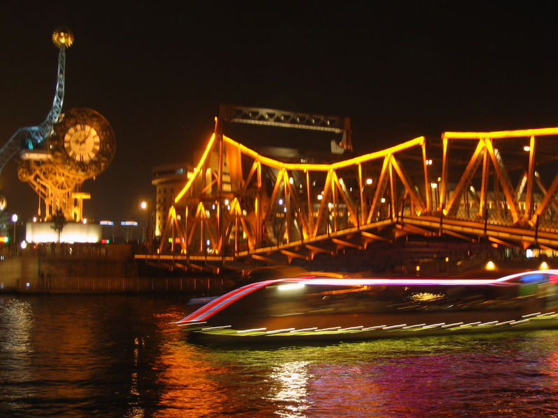 夜色下的天津海河