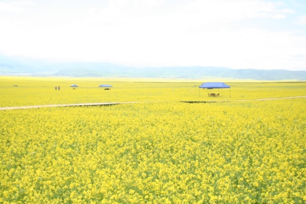 青海新聞網(wǎng)訊 (實習記者 劉成鵬 門源報道) 在曲尕者山下,一條懸架于花海之上的棧道,將遠道而來的游客送入了花海的腹地。沁人的芳香,輕松的樂曲,純正的蜂蜜水,四周群花環(huán)抱,游人們依亭而坐,盡情享受起了花海芬芳的沐浴。拍照、嬉戲、喝茶、閉目獨享,將自己置身于花海的芬芳之中,與自然相融。游人們在這里不僅領(lǐng)略著油菜花的美麗、油菜花的醉人和油菜花的壯觀,還能品味到皇城牧場上獨特的藏式大餐……