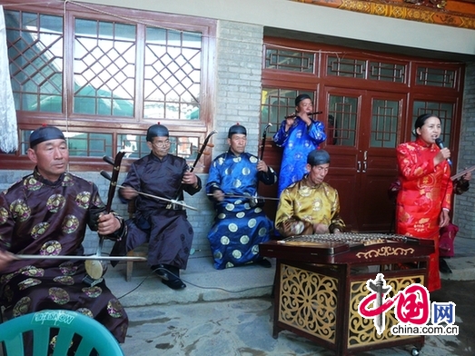 | 丹噶爾古城居民表演青海民間小調(diào)“繡荷包”。(攝影 鈕東昊) |