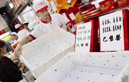 宮頤府、香港榮華等品牌,在超市的貨品均已不全。一些之前選好禮盒、現(xiàn)在來買的顧客只能敗興而歸或選擇他品。