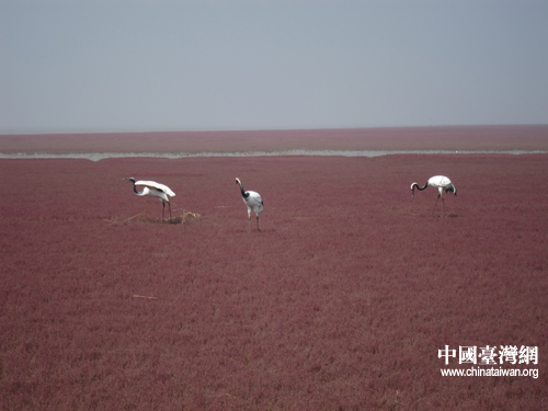 中國(guó)臺(tái)灣網(wǎng)9月13日盤(pán)錦消息 13日上午,參加兩岸媒體遼寧行的24名記者走進(jìn)遼寧盤(pán)錦市,欣賞世界奇觀“紅海灘”景色。