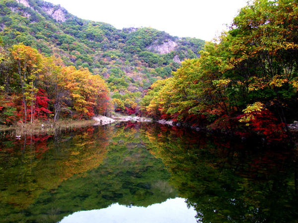 關(guān)門山位于本溪滿族自治縣境內(nèi),本溪水洞南十三公里,由紅葉湖(關(guān)門山水庫)和關(guān)門山森林公園構(gòu)成。距市區(qū)48公里。它有三道門:北門,在小市方向,雙峰對峙,中間拱橋相連;南門,在去湯溝的嶺頂,雙峰對峙,一闊一窄,一大一小,公路從中穿過,十分險要,故稱關(guān)門山;中門,在深谷河道中,“雙扉”夾水,寬只二十余米,為興修水庫的天然門柱。