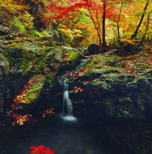 關(guān)門山一年四季五彩繽紛,景色各異。春天,滿山滿嶺野杜鵑、映山紅、天女木蘭花,還有不知名的各種山花,彼謝此開,爛熳不輟。夏天,云起云落,云霧變幻奇妙。秋天,“曉來誰染霜林醉”,這里漫山楓葉,層林丹染,“霜葉紅于二月花”。冬天,這里雖一如北國冰封雪飄,卻突然奇崛,胸藏溝壑。