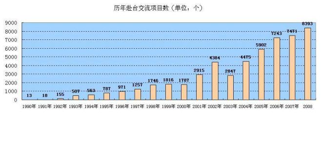 臺灣自一九八七年開放大陸探親后,即頒發(fā)兩岸地區(qū)教育交流的若干規(guī)定,而大陸教育部“教育委員會”也有相關(guān)規(guī)定負(fù)責(zé)管理大陸人士來臺教育參訪,并協(xié)助臺灣人士赴大陸的學(xué)校、教育機(jī)構(gòu)學(xué)習(xí)、進(jìn)修、講學(xué)、研究,及與大陸進(jìn)行教育交流、合作等相關(guān)事宜。近年來,兩岸文教活動交流活動頻繁,人數(shù)屢創(chuàng)新高。依據(jù)統(tǒng)計數(shù)據(jù)顯示,大陸地區(qū)人士來臺從事文教活動由2005年的12,315人、2006年14,775、2007年16,226到2008年的20,546(大陸工作委員會,2009)。依照此一趨勢看來,兩岸交流活動日益趨多,有增無減。