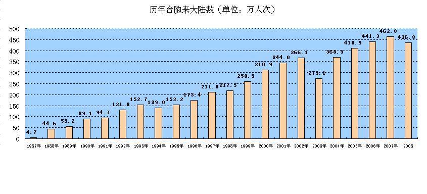 圖2:歷年臺灣人民赴大陸人數(shù)