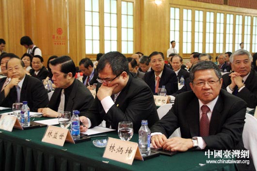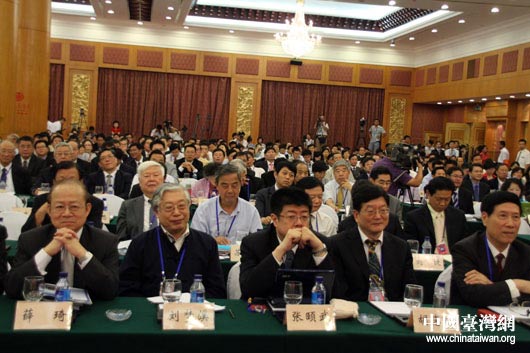 第五屆兩岸經(jīng)貿(mào)文化論壇專(zhuān)題報(bào)告7月11日上午在長(zhǎng)沙舉行,圖為中共中央臺(tái)辦主任王毅(前排左二)和中國(guó)國(guó)民黨副主席林豐正(前排左一)等出席。(中國(guó)臺(tái)灣網(wǎng) 鐘寶華 攝)