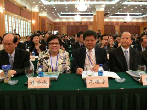 民進(jìn)黨人士許榮淑(左)、范振宗(右)備受禮遇,被安排在第一排參加兩岸論壇。圖片來源:大公報
