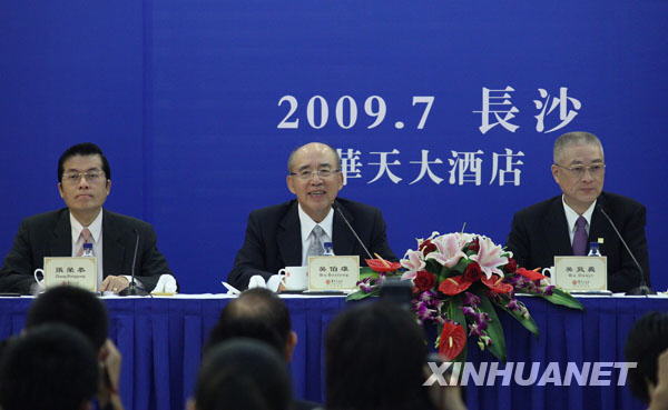 7月12日,中國國民黨主席吳伯雄(中)在長沙舉行記者會。新華社記者 邢廣利 攝