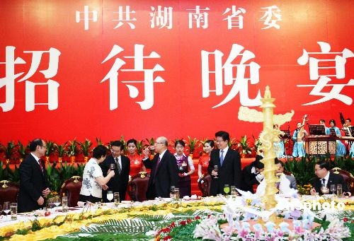第五屆兩岸經(jīng)貿(mào)文化論壇7月11日在長(zhǎng)沙開(kāi)幕,當(dāng)晚,東道主湖南省委舉行晚宴招待出席論壇的嘉賓。 中新社發(fā) 宋吉河 攝
