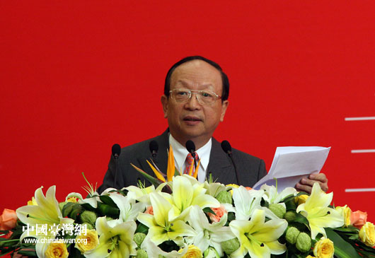 中國(guó)國(guó)民黨副主席蔣孝嚴(yán)主持閉幕式并宣布共同建議。(中國(guó)臺(tái)灣網(wǎng) 鐘寶華 攝)